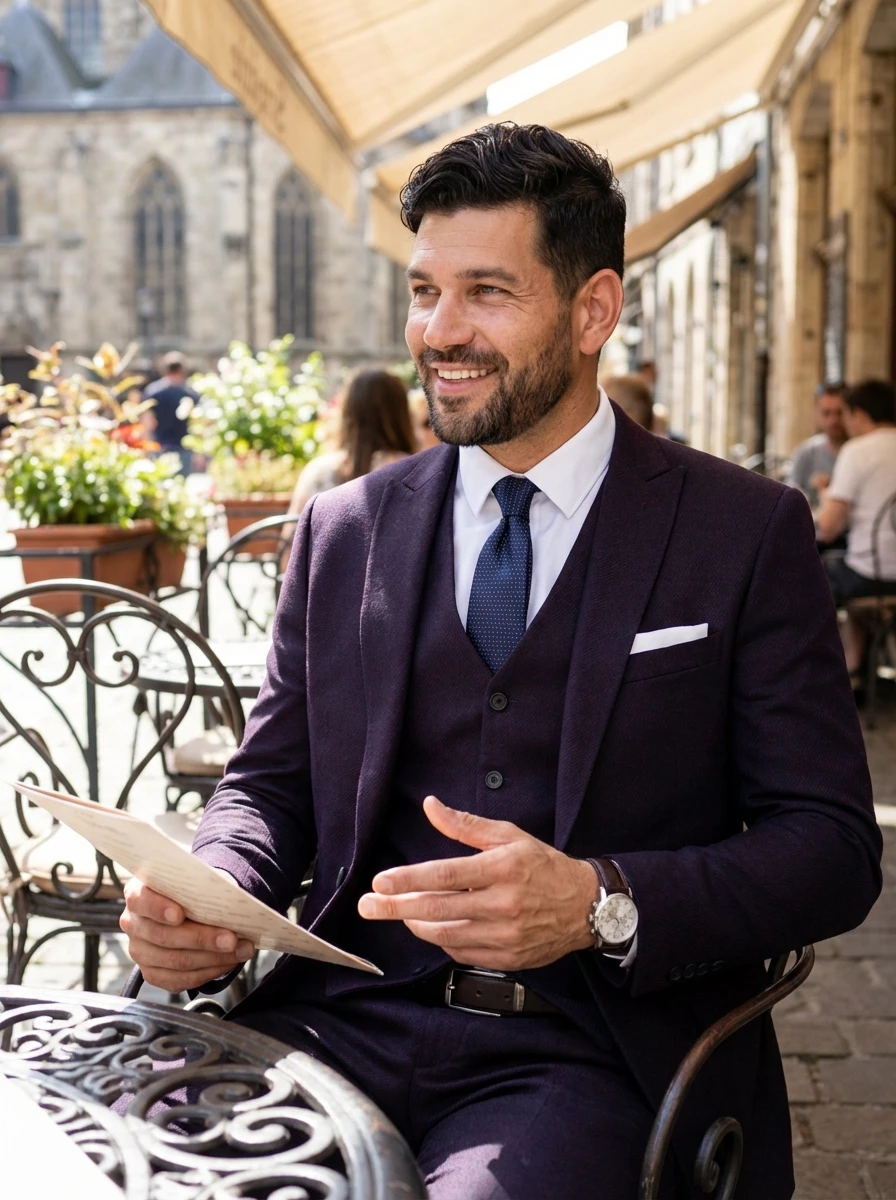 Ez a bordó slim öltöny ideális választás annak a modern férfinak, aki értékeli a részleteket és a kényelmet, miközben nem fél kitűnni a tömegből. Akár a mindennapos üzleti viselethez keres egy stílusos alternatívát, akár egy különleges eseményre készül, ahol a klasszikus fekete vagy sötétkék már unalmasnak tűnik. Tökéletes azoknak, akik a magabiztos eleganciát szeretnék képviselni egyedi színválasztással.