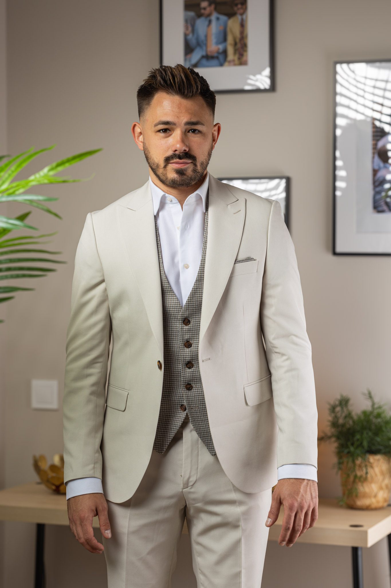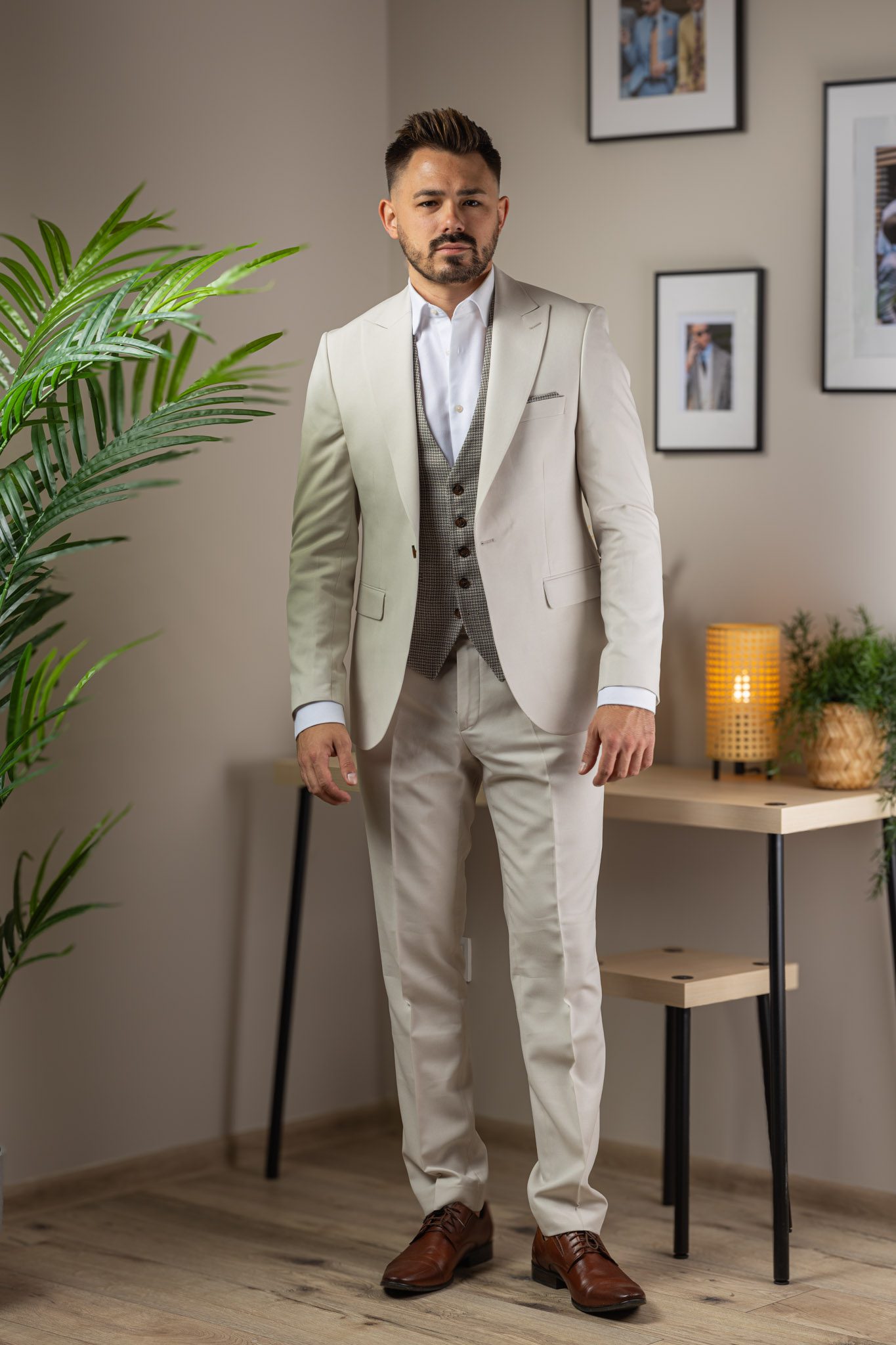 Krém Háromrészes Slim Öltöny
