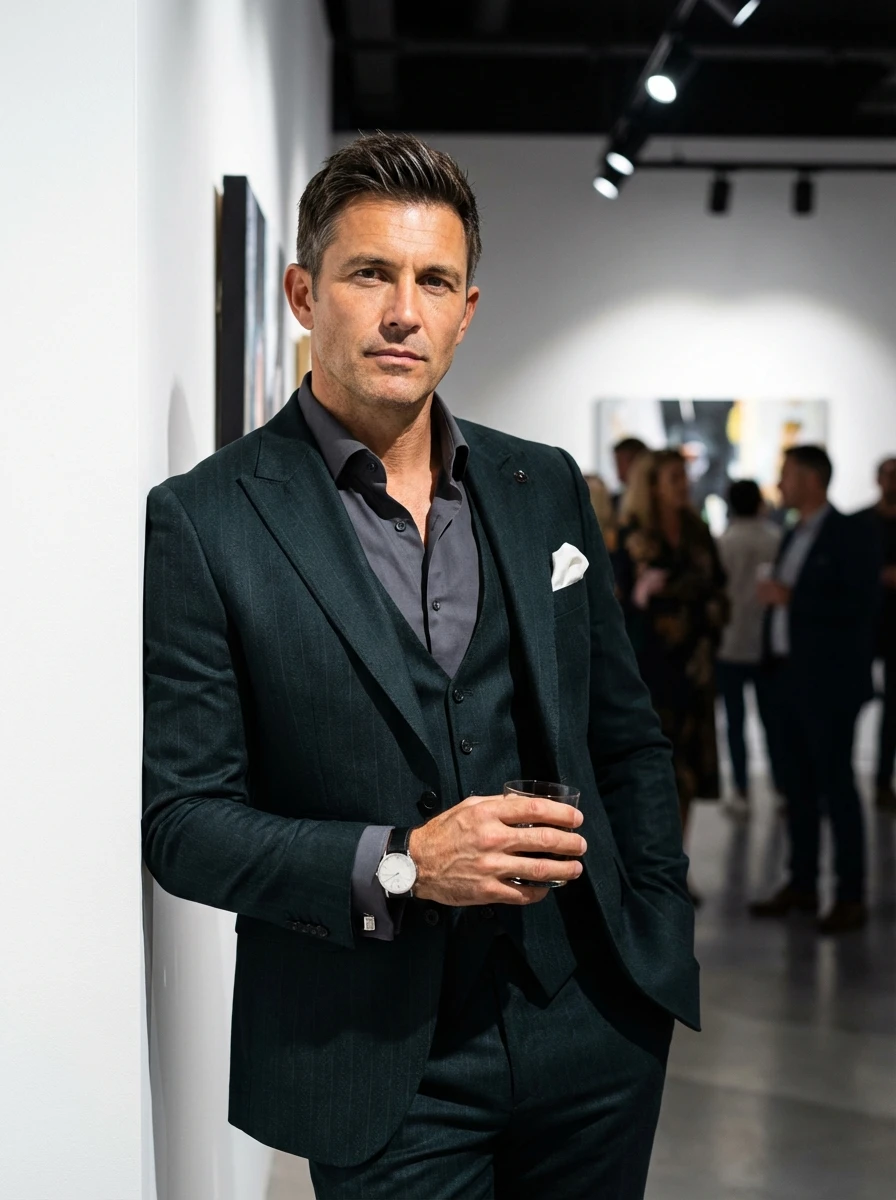 Ezt az olajzöld háromrészes slim öltönyt azoknak a férfiaknak ajánljuk, akik nem félnek eltérni a hagyományos sötétkék és szürke öltönyöktől, de mégis megőriznék az eleganciát. Ideális választás üzleti vezetőknek, kreatív szakembereknek és bárkinek, aki a modern, egyedi megjelenést preferálja irodai vagy társasági környezetben.
