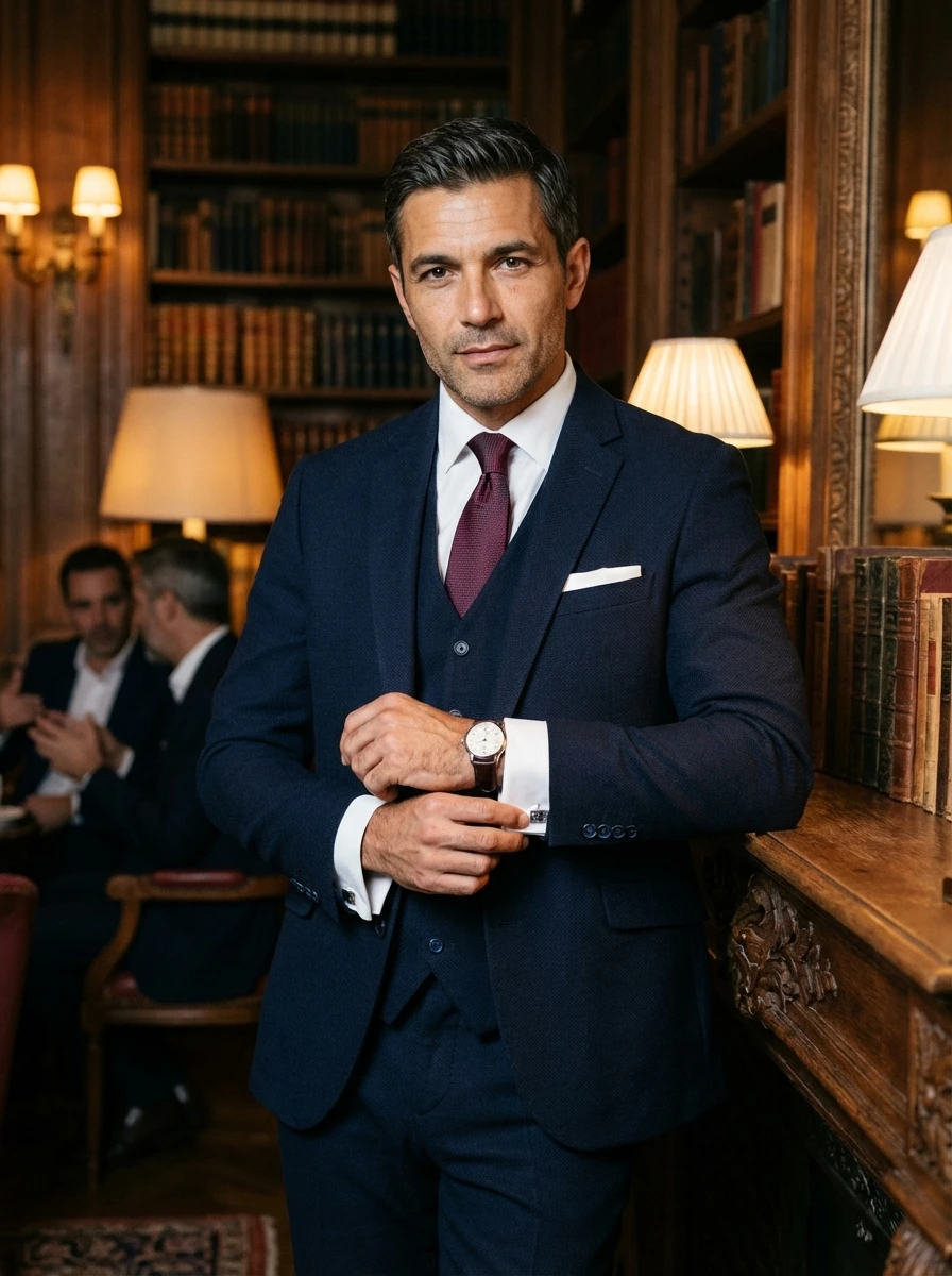Vegyél fel alá egy klasszikus fehér, mandzsettás inget, amit egy mélybordó, finoman mintázott selyem nyakkendővel egészítesz ki. Egy sötétbarna, fűzős oxford cipő és egy hozzá illő bőr öv teszi teljessé a megjelenést, ami magabiztosságot sugároz a tárgyalóasztalnál. Hagyj ki minden feltűnő kiegészítőt, a hangsúly a letisztult elegancián legyen.