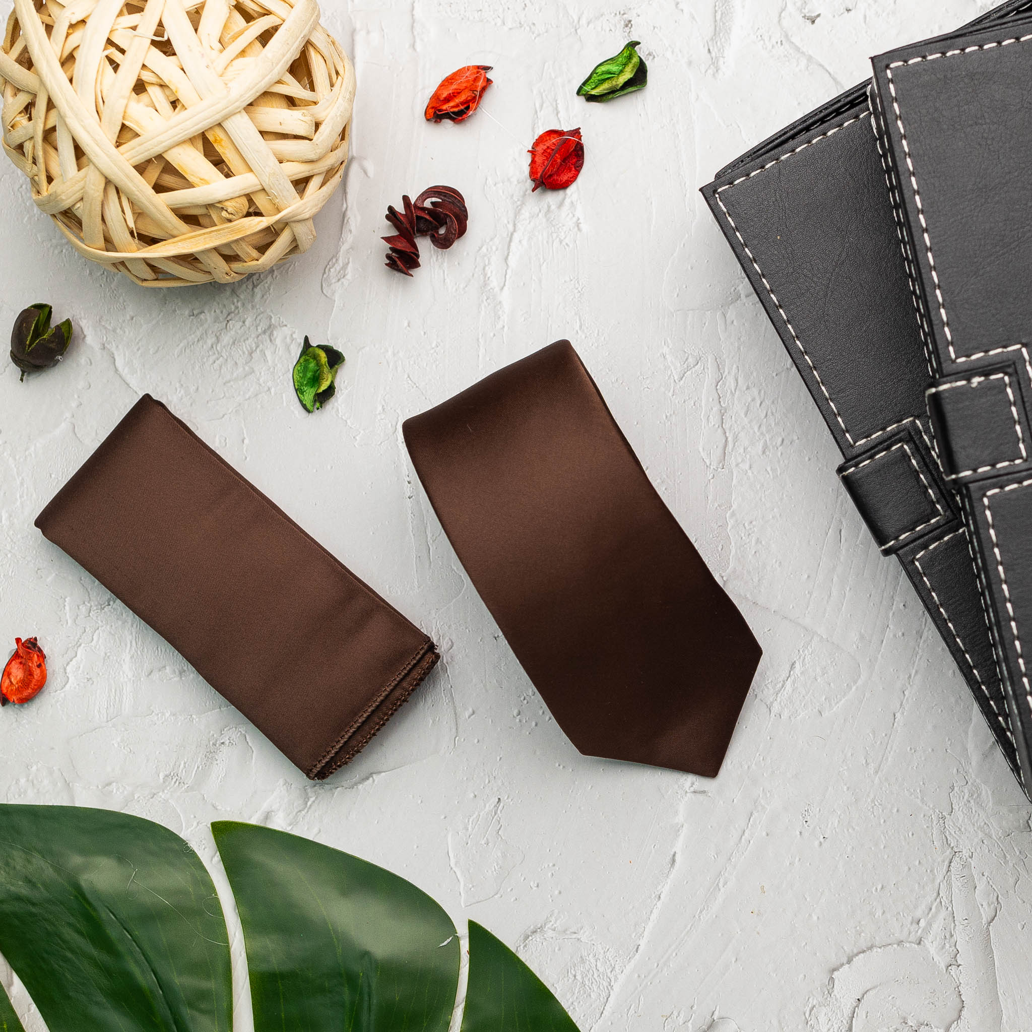 Sötétbarna Slim Nyakkendő + Díszzsebkendő