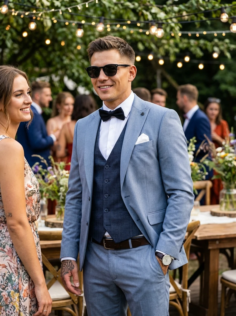 Ez a világos kék háromrészes öltöny azoknak a férfiaknak készült, akik a nyári hónapokban is kifogástalanul elegánsak szeretnének lenni, de kerülik a túlzottan formális, nehéz anyagokat. Ideális választás, ha egy olyan öltönyt keresel, ami esküvőn, kerti partin vagy akár egy elegáns nyári koktélon is megállja a helyét.