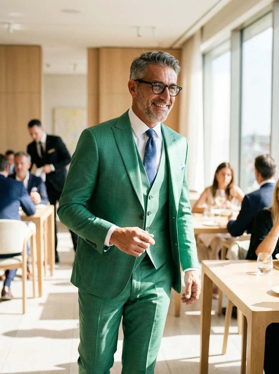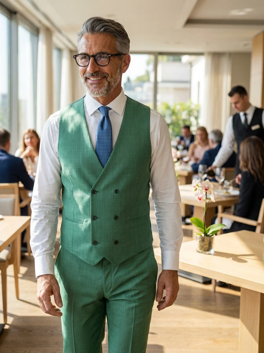 Ez a Világoszöld Háromrészes Slim Öltöny azoknak a férfiaknak szól, akik mernek kilépni a megszokott keretek közül, és egyedi stílusukkal szeretnének kitűnni. Ha unod a sötét színeket, és egy friss, modern megjelenésre vágysz, amely mégis elegáns marad, akkor ez a darab neked készült. Ideális választás, ha a munkád vagy társasági életed megköveteli az öltönyviseletet, de szeretnél egy lazább, mégis kifinomult alternatívát a klasszikus sötét darabok mellé.